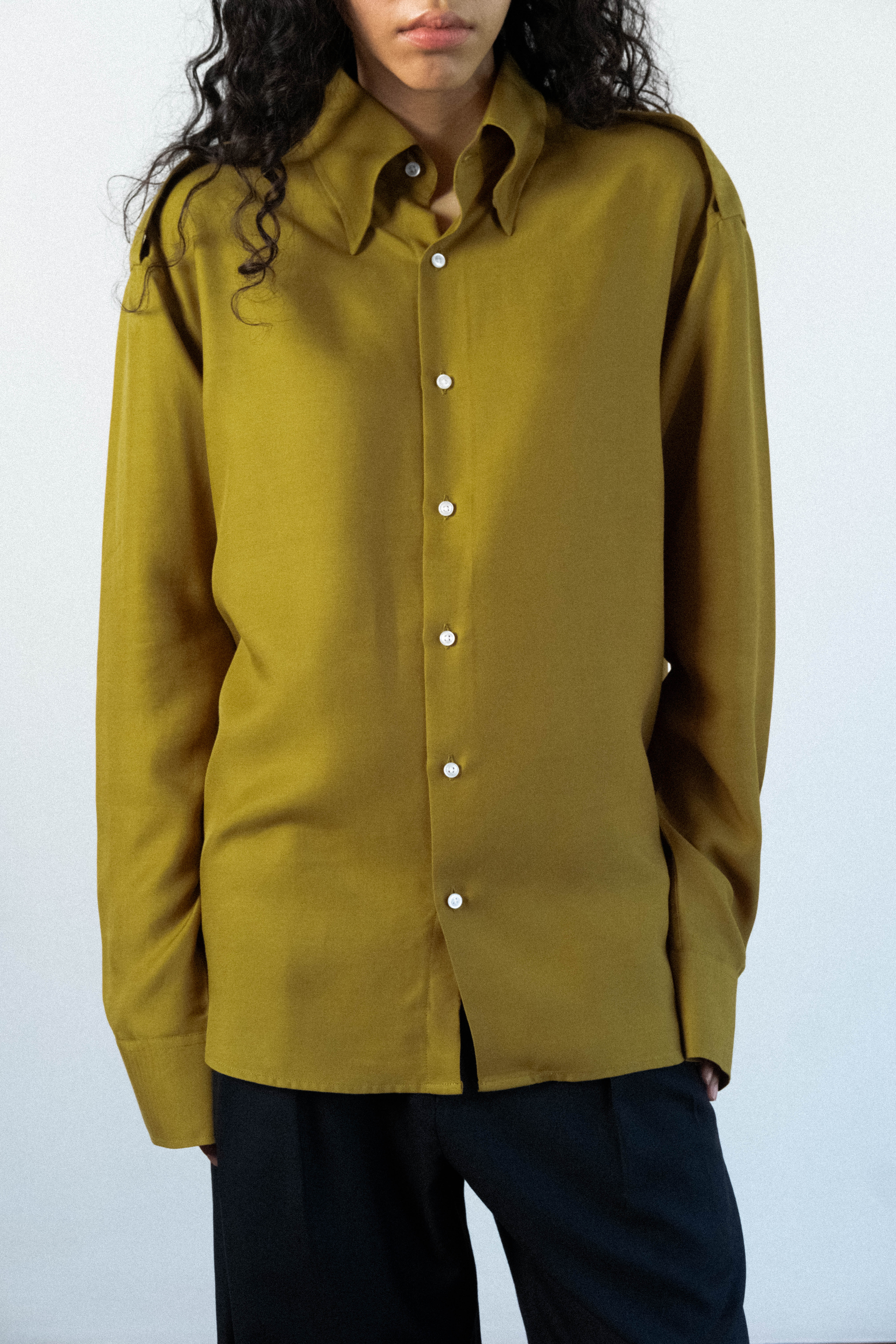 EPAULETTE SHIRT in olive rayon