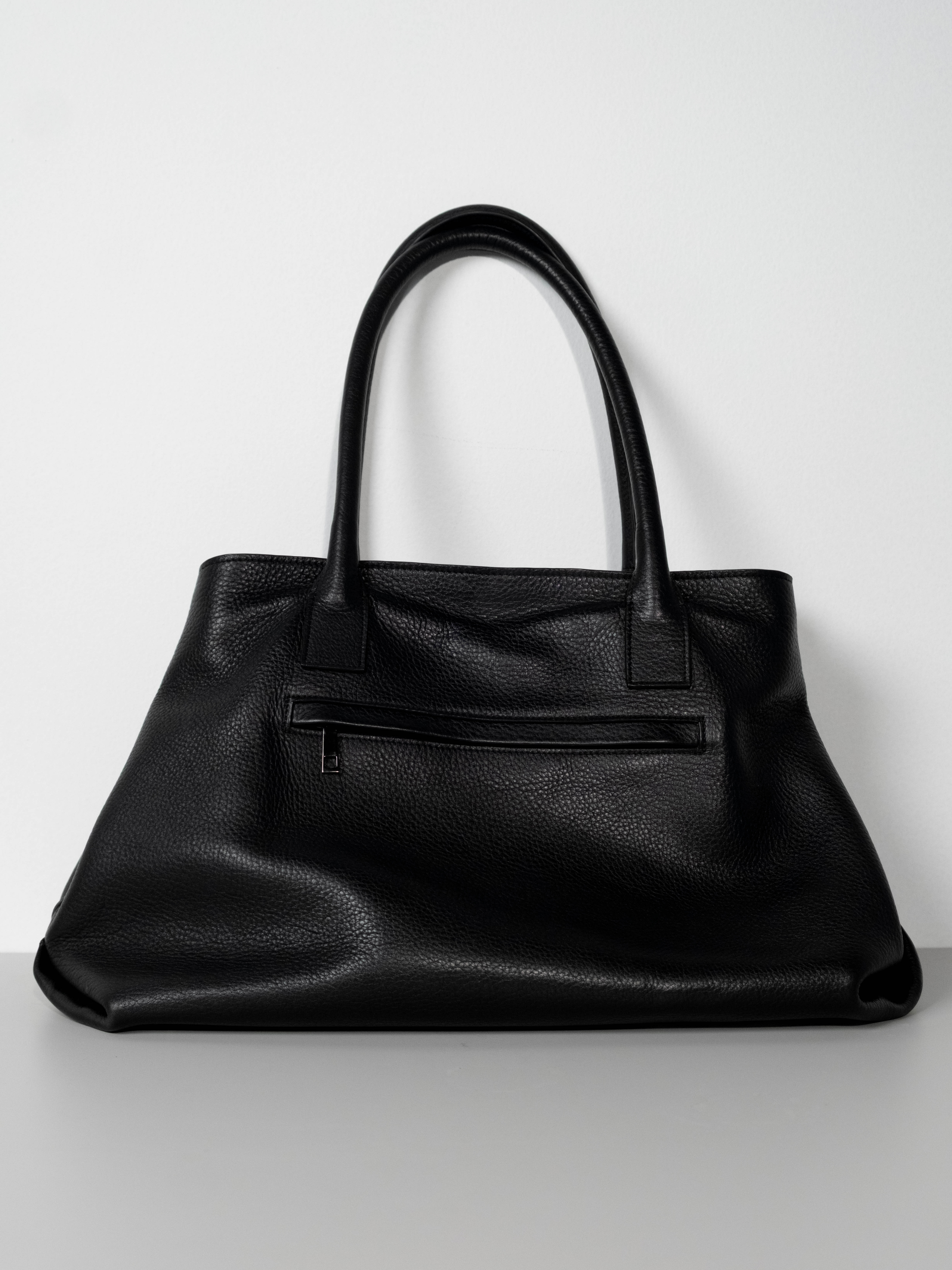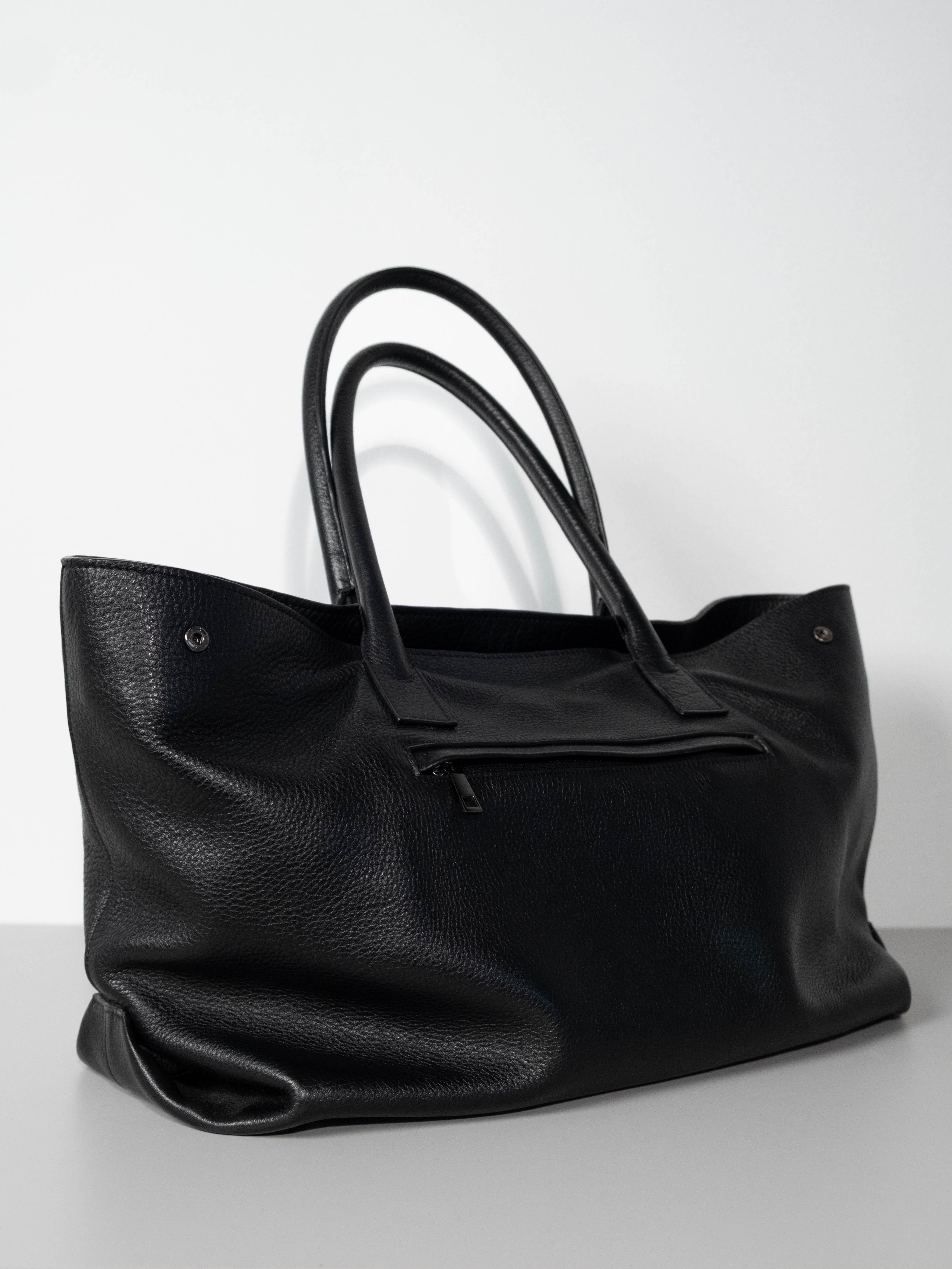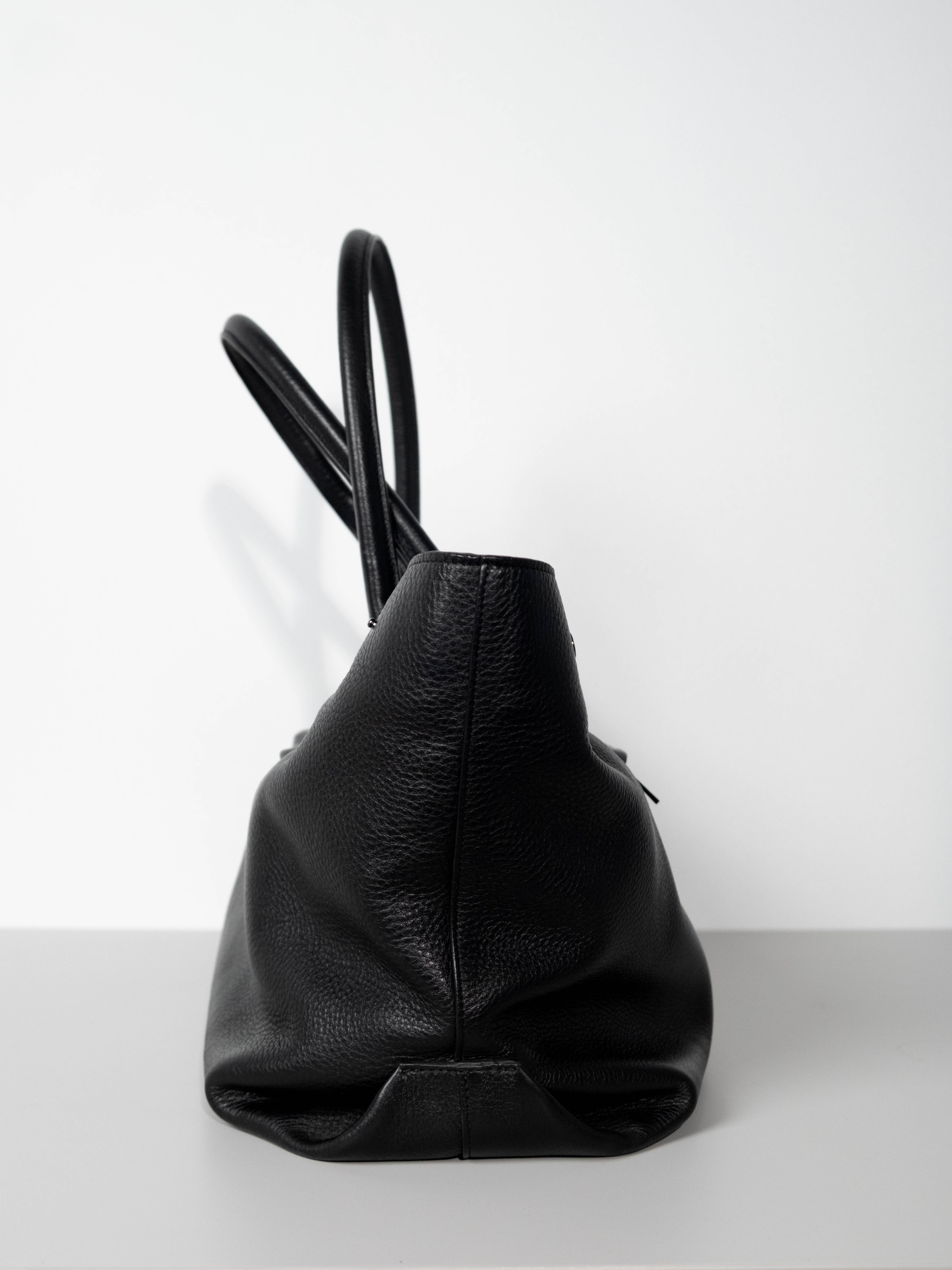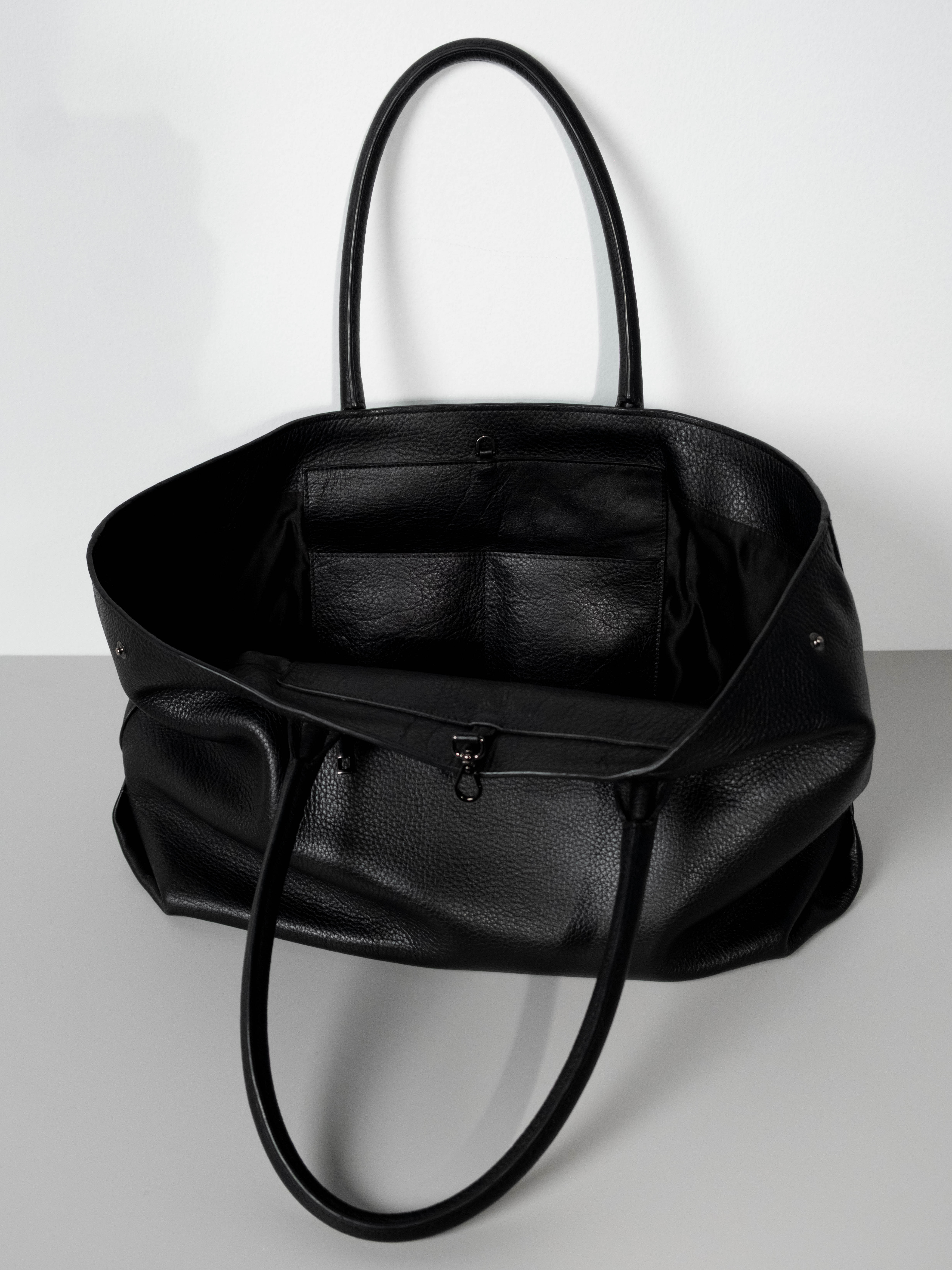 Crafted from pebbled leather, the symmetrical tote bag balances timeless elegance with everyday utility. Its spacious, structured interior features organized 4 slip pockets and a secure toggle closure, while the exterior offers 2 discreet zippered compartmentS for essentials. With elongated shoulder straps and side-snap gussets for an adjustable silhouette, it’s the perfect companion for the modern seeking sophisticated, functional design.