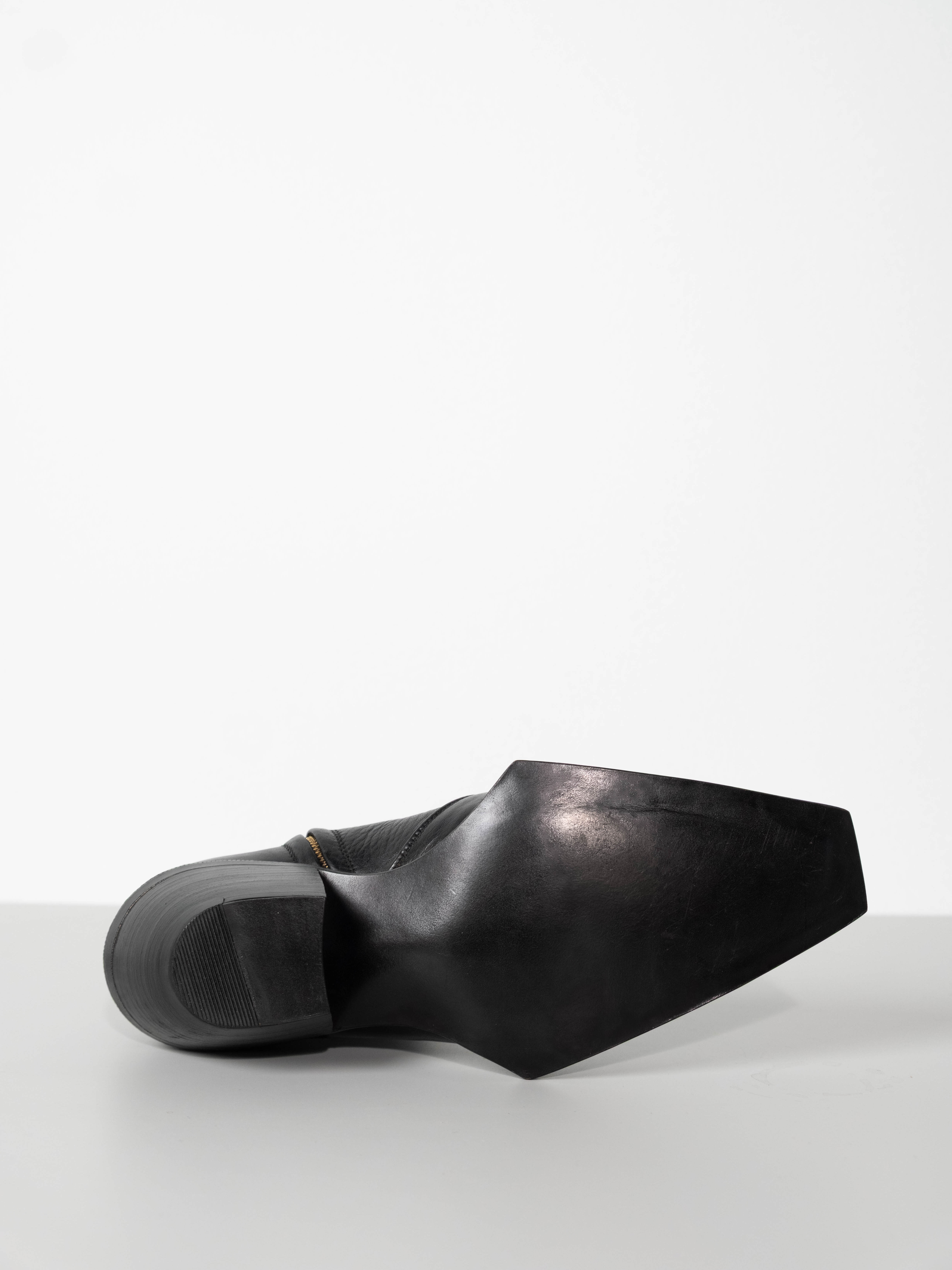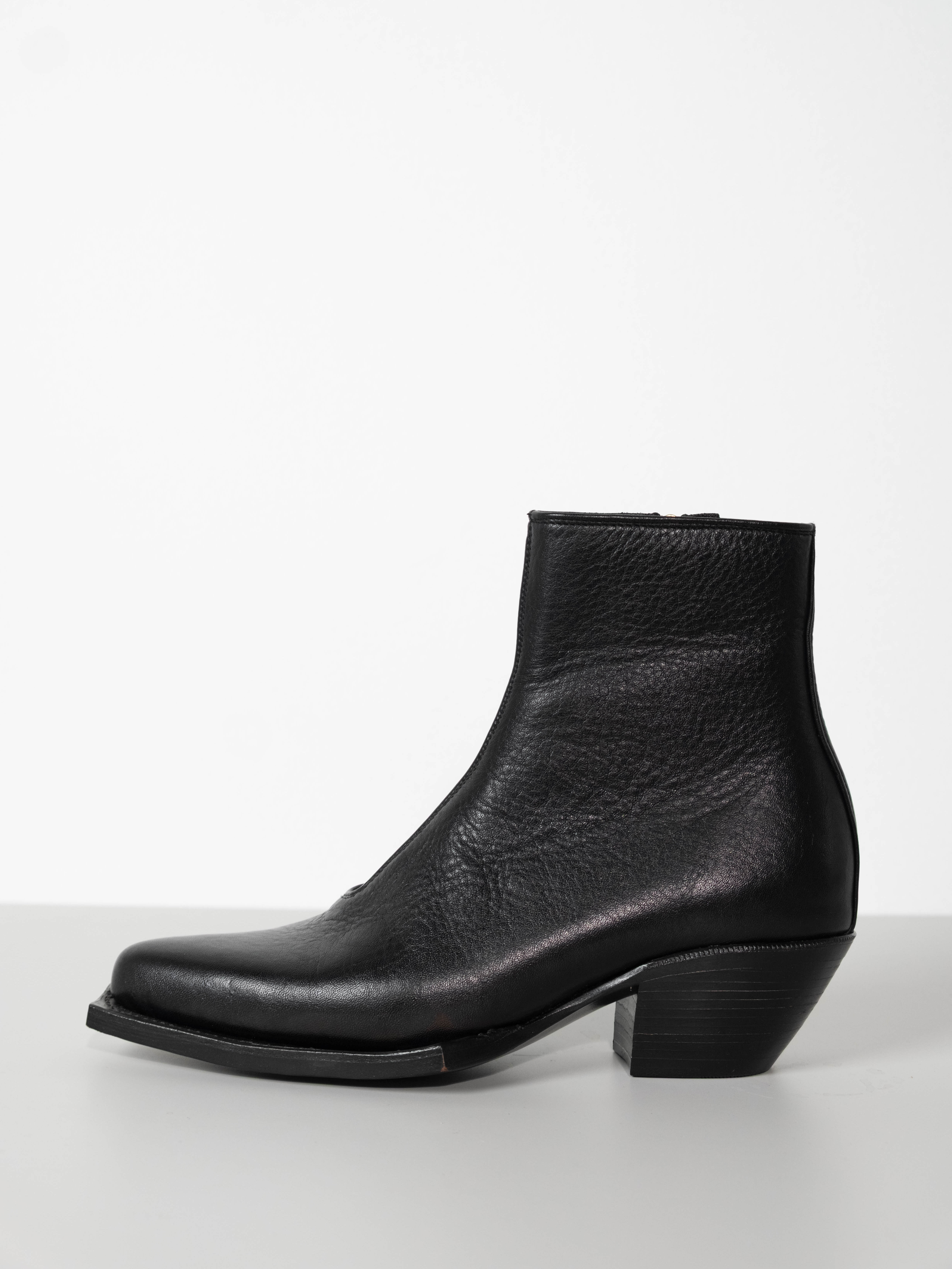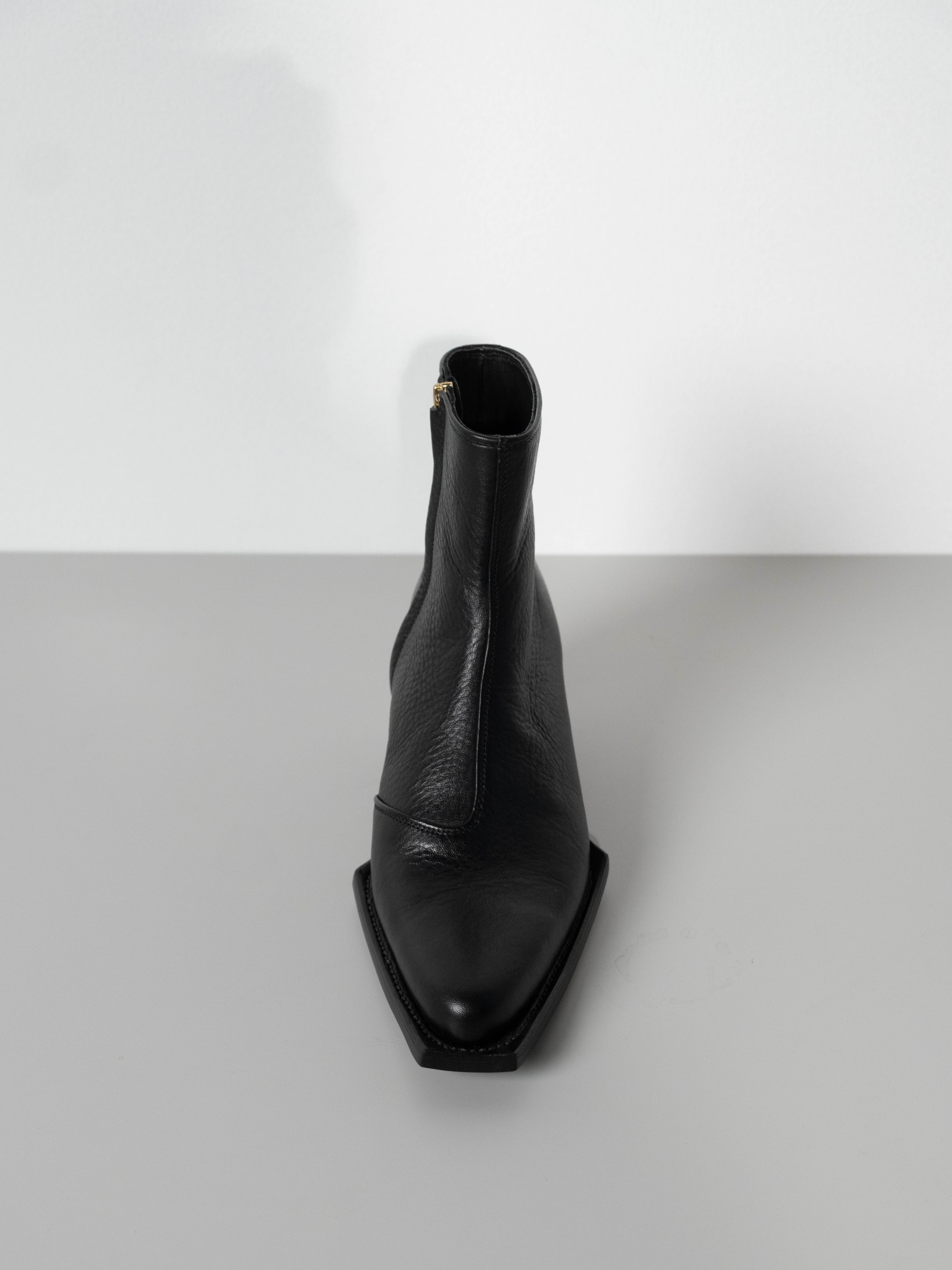 Hand crafted using full-grain cow leather. Featuring a sharp, point toe with square platform and a sculpted 5 CM Cuban heel, they offer a modern Western-inspired silhouette. A discreet side-zip closure ensures a streamlined fit, while the durable leather construction promises lasting comfort. Versatile and bold.